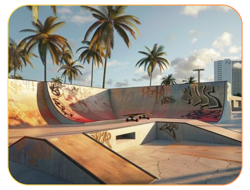 Shred through our dynamic park and ramp setup, showcasing your style and tricks